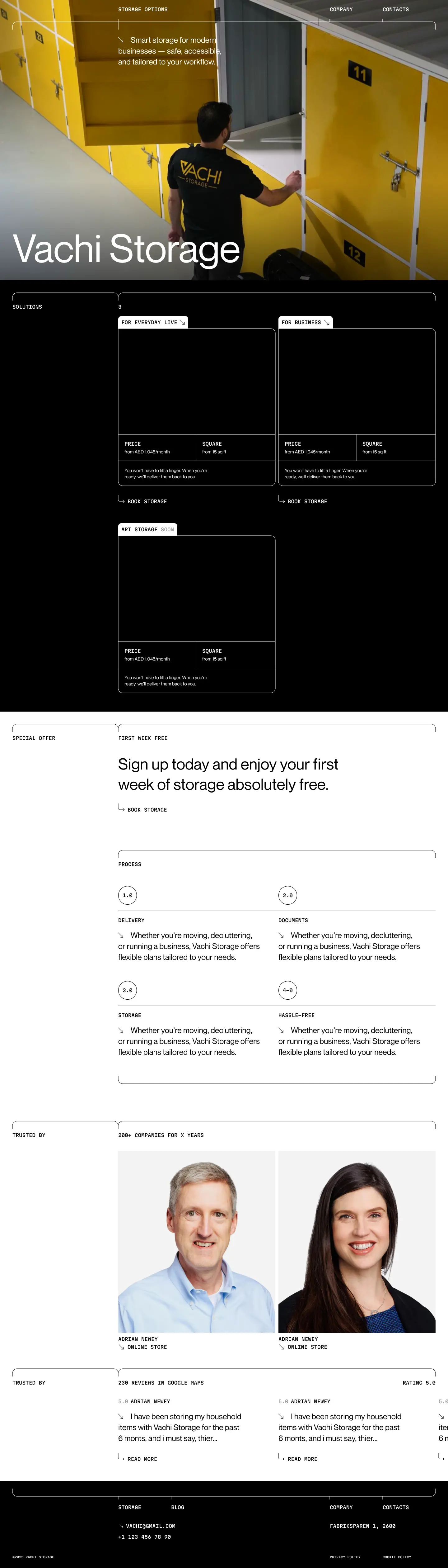Vachi Storage – a self-storage business in Dubai, part of an investment group that buys traditional businesses, digitises them, grows profit and then exits.They don’t have an in-house dev team: they needed a Webflow partner who could own the entire web stack, not just “build one site”.
